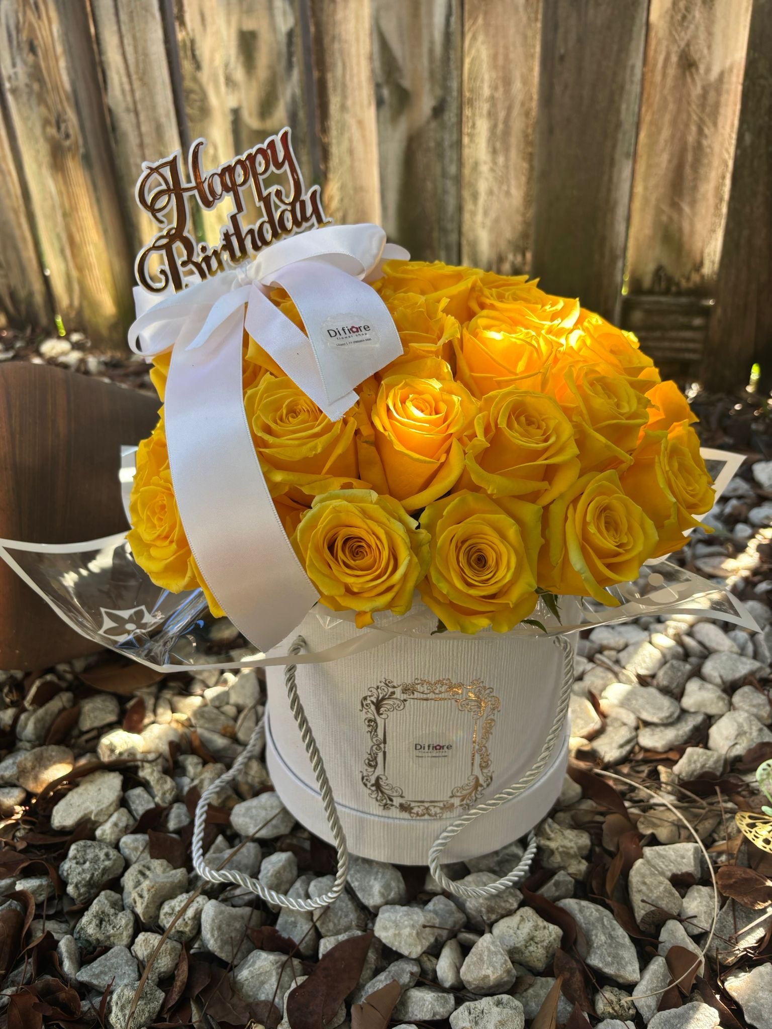 Eleva tus regalos con este exquisito arreglo de rosas en forma de domo, presentado en una caja redonda de lujo. Cada flor está meticulosamente dispuesta para crear una impresionante pieza floral que captura elegancia atemporal. Los detalles decorativos incluyen acentos de follaje delicado, adornos de cinta premium y una caja de presentación sofisticada diseñada para preservar la belleza del arreglo. Perfecto para celebraciones, gestos románticos o causar una impresión memorable. Esta pieza de declaración combina artesanía con refinamiento, transformando cualquier ocasión en algo verdaderamente extraordinario.