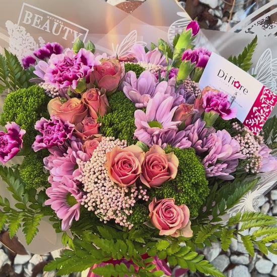 Eleva cualquier ocasión con nuestra envoltura de flores variadas, un arreglo cuidadosamente seleccionado con una mezcla dinámica de flores complementada con exuberante vegetación. Cada envoltura comienza con un mínimo de 15 flores, lo que garantiza una presentación completa y visualmente llamativa. La diversa selección de flores crea variación y textura de color natural, mientras que el follaje verde agrega profundidad y sofisticación. Perfecto para regalos o disfrute personal, este arreglo combina experiencia floral con elegancia accesible.